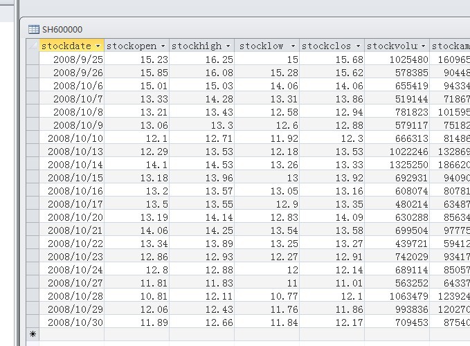 stockdate stockopen stockhigh stocklow stockclose stockvolume stockamount stockadvance stockdecline stockopenint stockqt stockopenv stockopena