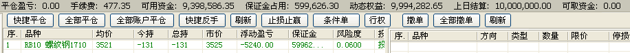 你好,现在已经可以开平仓了,原来是设置问题,因开始是0持仓,比如我设置当 持仓>0时改成 持仓>=0时就可以了,谢谢!但现在又出另一问题:明明开仓只占总资金的5%,却提示资金不足,并叫设置合理的初始资金和交易费用,我帐户是1000万现设置用100万都有问题?这是什么缘故呢?