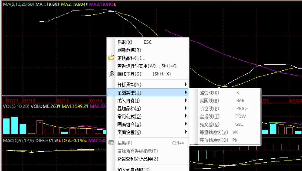 我的软件不显示K线了,邮件主图类型中的选项都变成了灰色。