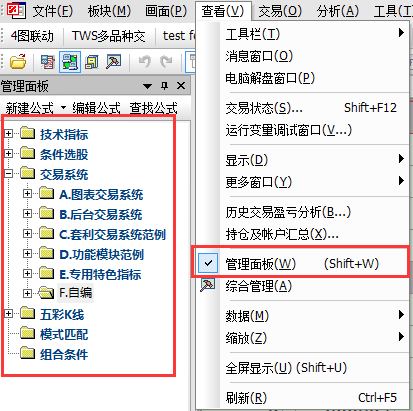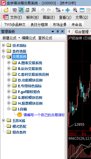 软件中提供交易策略模板,用户可以参考学习。在左侧管理面板中