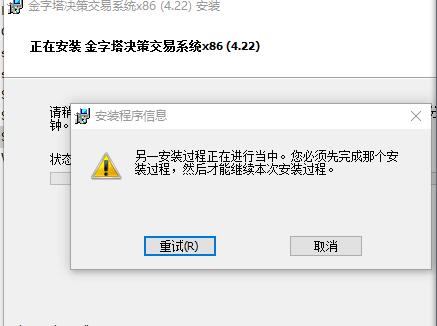 有相同的安装正在进行中吧?你具体怎么操作导致这样的。不行的话,到任务管理器里把金字塔进程先全部关闭了,然后再重新安装。