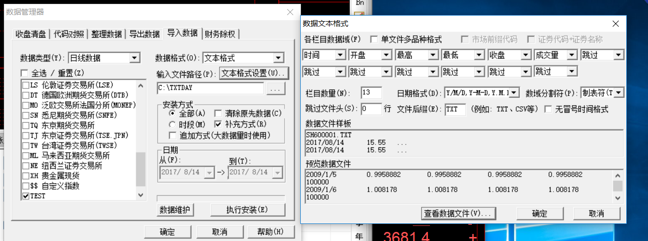 帖子里规定: TXT的命名方式为 市场代码+品种代码, 后缀.txt   我是仿照帖子在“A股”里设置的市场TEST, 市场代码=00TEST, 品种代码=699999, 请老师帮忙看看TXT文件本身有问题吗?非常感谢!