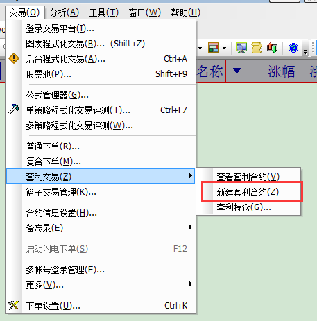 点击“交易”-套利交易,新建套利合约,然后可以查看套利K线图
