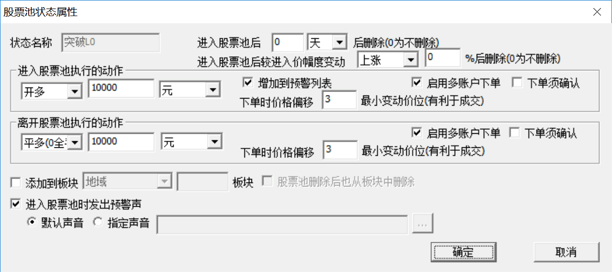 这个界面我有点疑惑,开平的条件不是在后台程序里面写吗?为什么要设置进入股票池,离开股票池的动作?