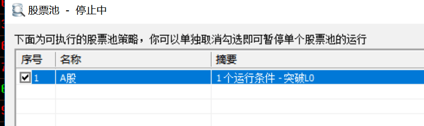 2、股票池可以结合后台使用,股票池只需要选出符合条件的股票,在后台程序化中直接监控股票池,把买卖交给后台程序化处理。另外股票池中也有根据进入或离开股票池进行买入和卖出的动作,看个人的需求了,两种方式都可以。