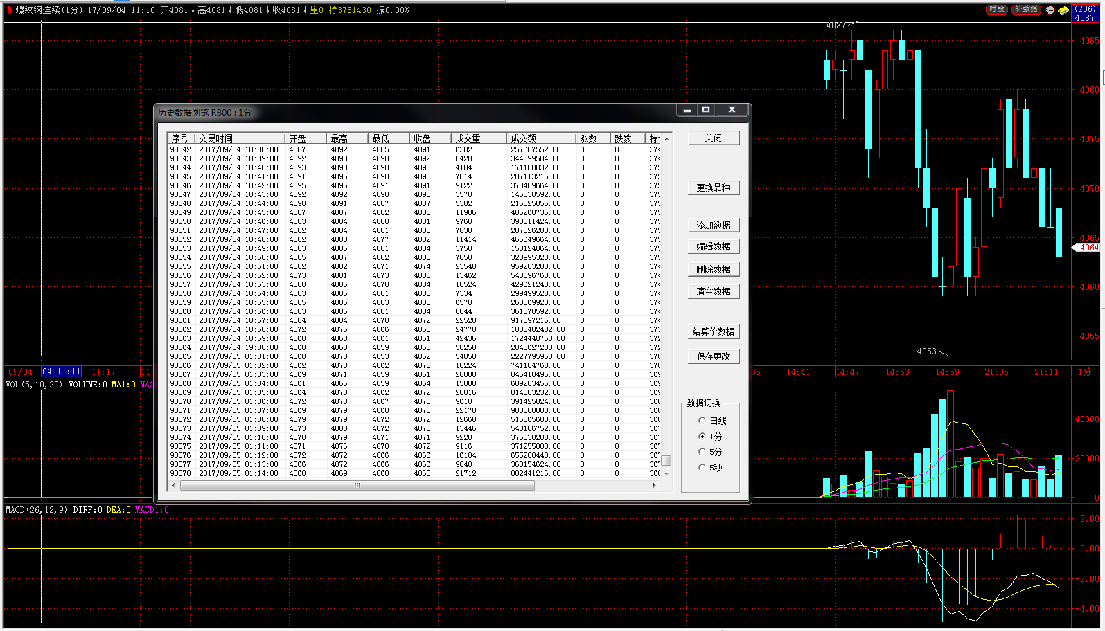 已删除并重新批量下载1分钟数据,但还是显示不正常