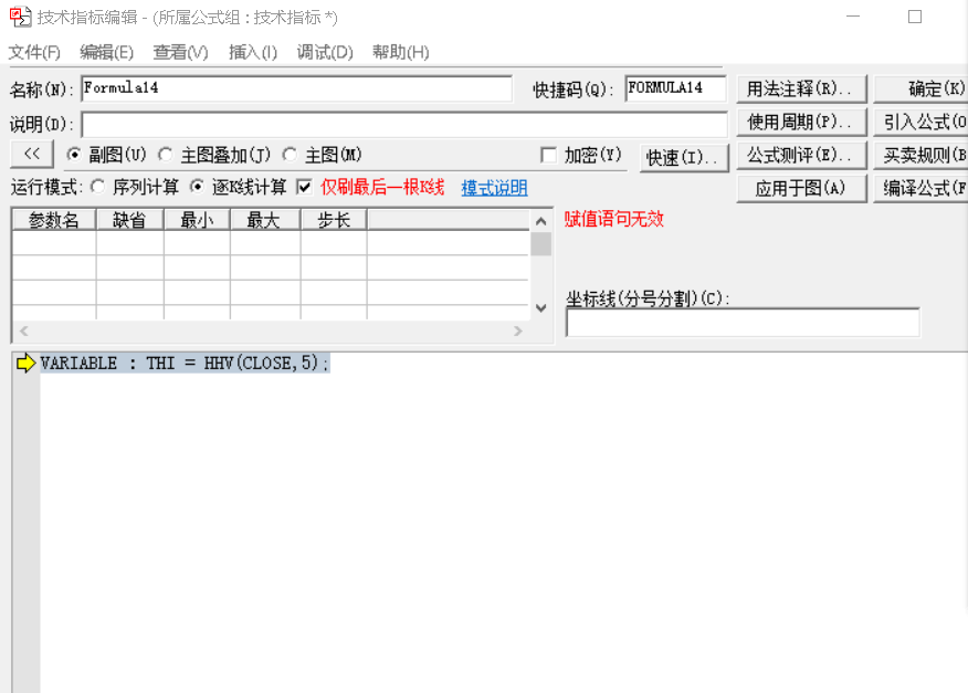 提示也是赋值语句无效,问题应该出在不能使用 HHV函数。