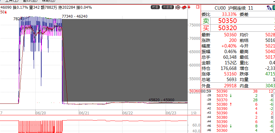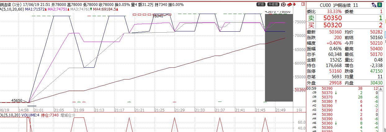 铜的1分钟线数据补完成这样了6月19以后有几天不对