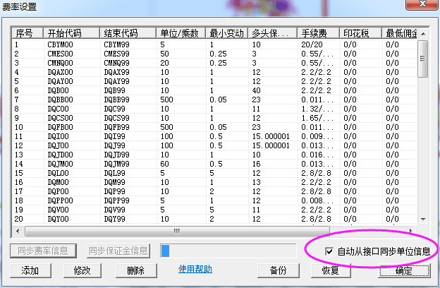同步费率后,是否以后启动软件保证金和费率都自动同步了?  发帖心情 Post By:2017/10/9 9:18:21 [只看该作者]