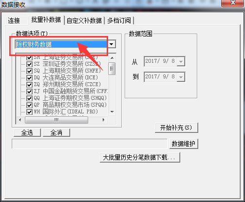 工具-》数据补充,补充除权财务数据