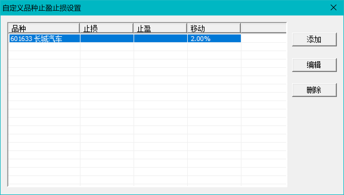 如设置:按幅度2.5%移动止损。(跟踪价格盈利回落)