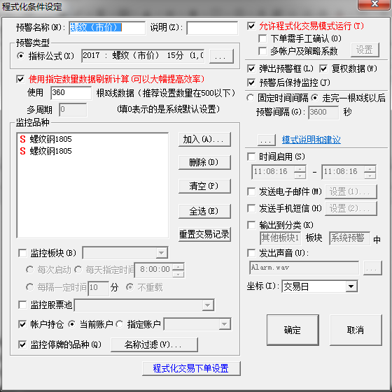 截图看下预警条件的设置,是否勾选了监控账户持仓等。