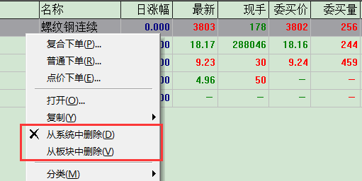 选择该品种,右键鼠标,选择该品种从板块中删除;