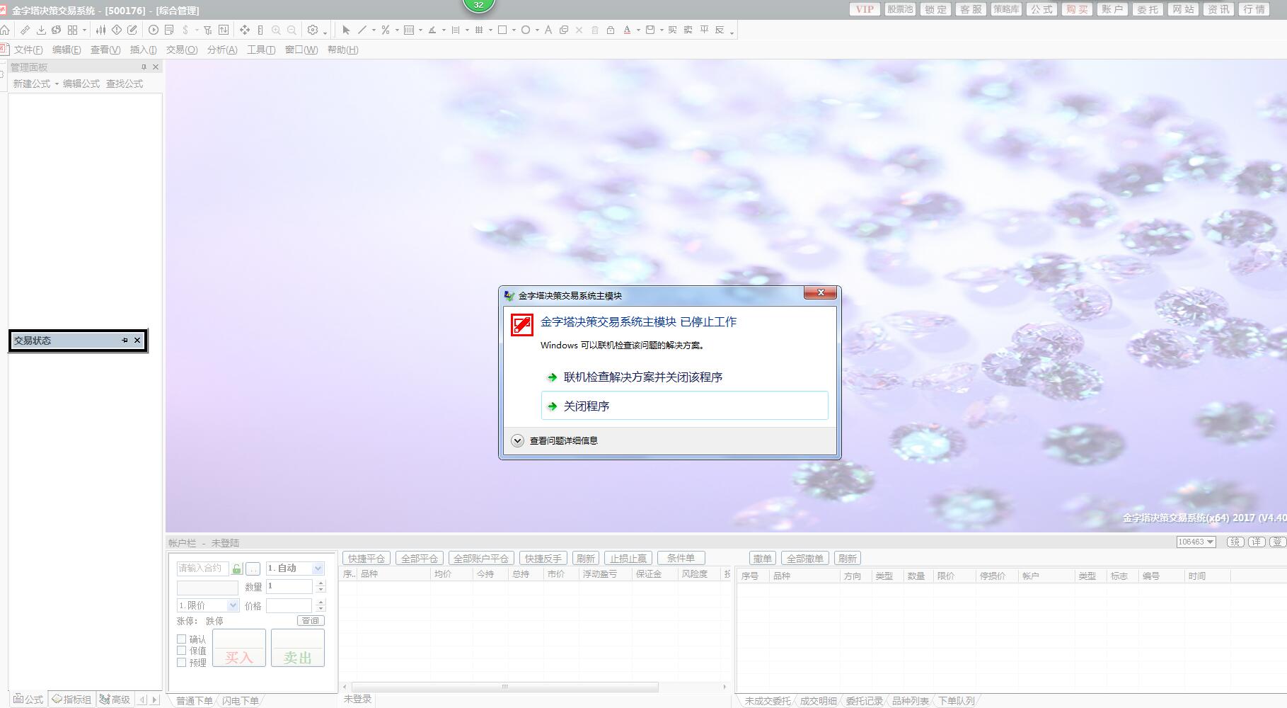 金字塔客服中心 - 专业程序化交易软件提供商金字塔软件金字塔软件问题提交 → 金字塔启动不了,重装,恢复公式又变成这样了