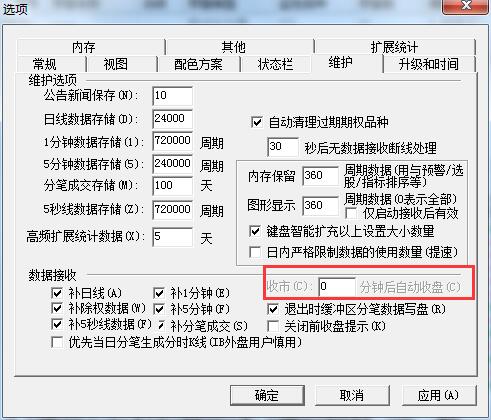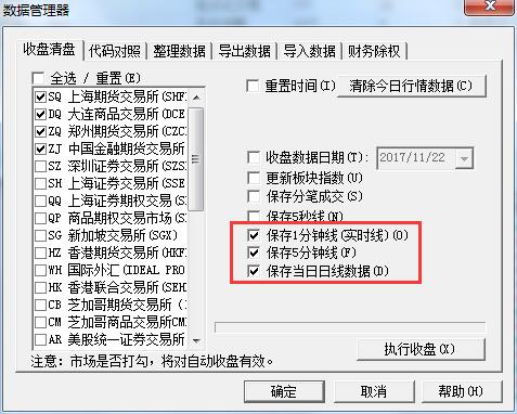 您可以设置收盘后固定的时间来执行自动收盘,可以选择保存不同周期的数据,包括1分钟周期,5分钟周期等;