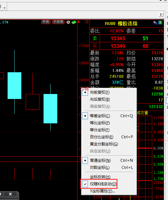或者k线图价格坐标轴点右键-》紧随k线变动