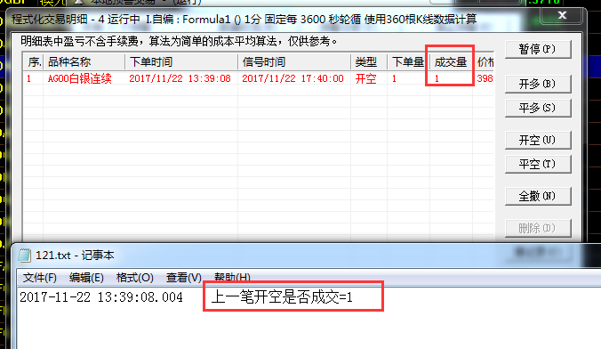 我在后台程序化里使用了TISPRVREMAIN(3),明明上一手空单已成交,但是debugfile出来的数值一直为0.