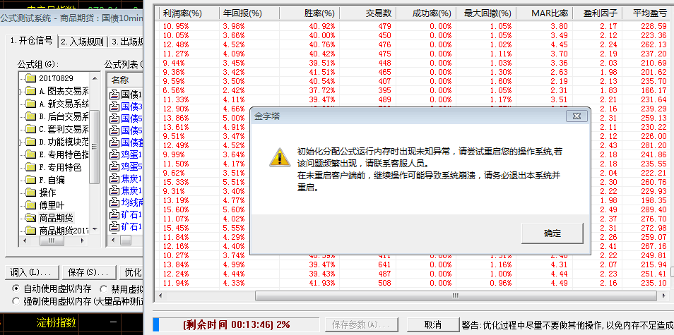 金字塔客服中心 - 专业程序化交易软件提供商金字塔软件金字塔软件问题提交 → 优化时过了一段时间就会弹出报错
