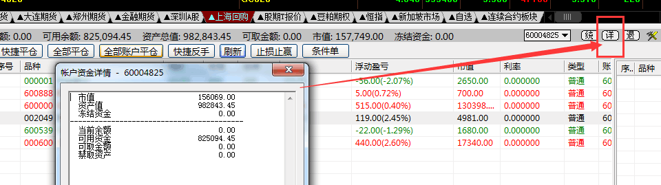 您的意思说资产总值不包括逆回购这部分吗? 方便截个下面的图看下,点击一下交易面板的“详”,或者不方便可以通过QQ1971344681发给工作人员看一下