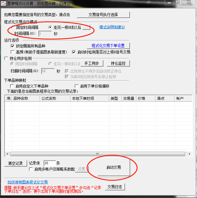 当开启图表程式化交易后(启动交易按钮),我用的交易指令是BUY, SELL,buyshort, sellshort...无论我选“固定时间间隔” 还是 “走完一根K线后”,交易指令都是在走完一根K线后发出,是不是我什么地方设置错了。