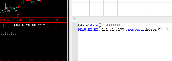 DRAWTEXTEX( 1,1 ,1 ,100 ,numtostr(kdate,0));