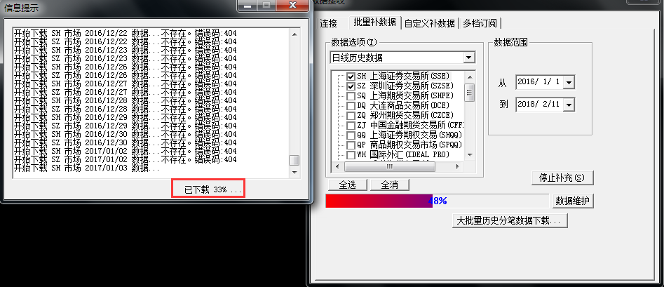 请教:为何我下载2016年的股票数据,系统提示每天的数据都不存在,出错。错误码404