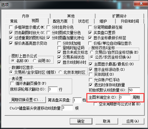 工具--选项--视图中,是否设置了右侧空余K线,如下图,默认是为0的。从你的K线图图上看K线的时间与盘口额时间是对应的,并没有少K线。