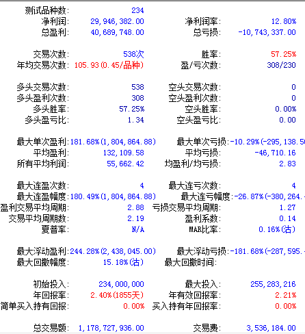 启动资金100万是每个品种100万,234个品种就是2.34亿,净利3千万就是12.8%没错