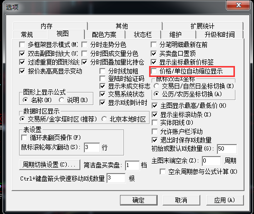 工具---选项--视图,把价格\单位缩位显示,前面的勾去掉。再关闭窗口,重新打开品种。