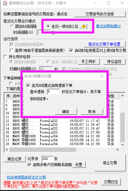 你用的是固定时间间隔还是走完K线的模式?另外不发单是图表程序化交易中都没有触发这个信号吗, 还是信号触发了,没有执行下单?