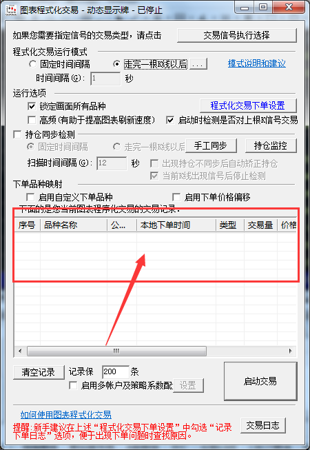 从下单日志中看到下午2点没有触发下单的动作,在图表程序化交易的交易记录中是否触发了这个信号呢。是事后发现没有下单,还是当时有观察有到这个信号而没有下单呢,可能是信号闪烁的原因,当时没有检测到这个信号。