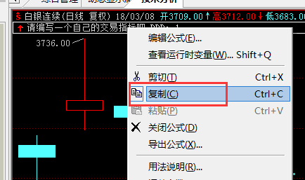 是的,不能在每根K线上有连续的输出。指标数据是可以导出的,右键加载在图表上的指标---选择复制,再粘贴到TXT中即可。
