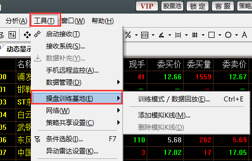 点击菜单栏上的工具---操盘手训练基地---K线回放功能,如下图: