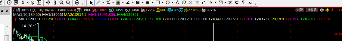 就是技术图形上面这个,指标FZK19,FZK20后面的就看不到指标值 了,我的指标里面有很多的这样的数值指标,但是技术图形界面太小看不到后面的指标数值,我点右键查看运行时变量也看不到里面的指标数值,怎么才能看到指标里面的各种值  下面是指标MKH的代码,我希望把鼠标放到任何一根一分钟K线都能看到对应的FZD1到FZD22的值,max_fzd和max_fzK的值