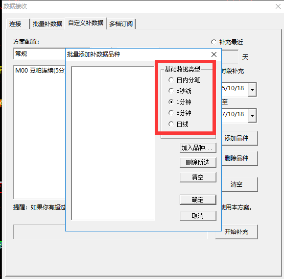 60分钟补充5分钟周期数据即可;5分钟 倍数的周期下载5分钟数据,非5分钟倍数的周期下载1分钟周期数据