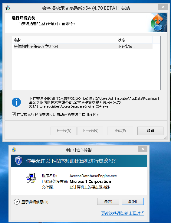 我已经安装了64位的office,再安装金字塔64位的4.7试用版,出现这种情况,无法继续安装,请问如何解决?