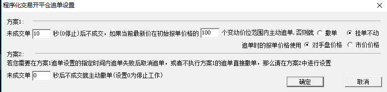 1.这个设置是不是当10秒不成交如果价格在100跳内,撤单重新挂单,如果挂单10秒还不成交,继续撤单挂单。。。。 2.如果我够选了“滑点统计”---“委托价-成交价”那么这个“委托价”是只第一次的挂单价格吗?