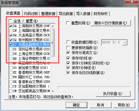 您如果是24小时都运行着金字塔,可以使用自动收盘的功能,每天收盘后将数据保存于本地,工具》选项》维护》收盘后N分钟自动收盘;还需在工具》数据管理》数据管理器中设置需要做收盘处理的市场和周期;如下图
