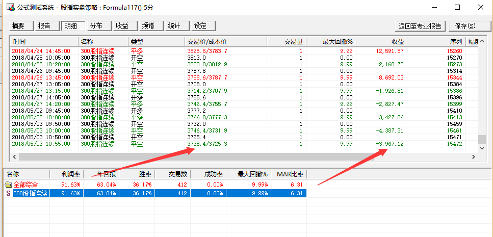1:测试不加滑点,最后一笔交易(3725.4-3738.4)=-3900,为什么收益多出现了-67呢,是不是手续费,如果是在哪里设置