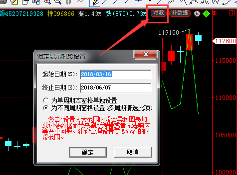 可以点击K线图右上方 “时段” 按钮,快速切换至某个时间范围的K线,您可以试试