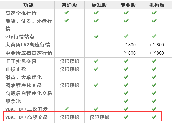 官方产品显示标准版是支持VBS、C++二次开发功能的,没说不支持C++开发的实盘交易,这样有点误导客户,算隐瞒实情么?