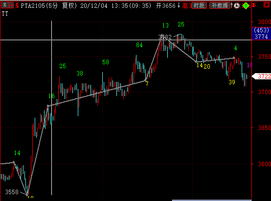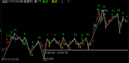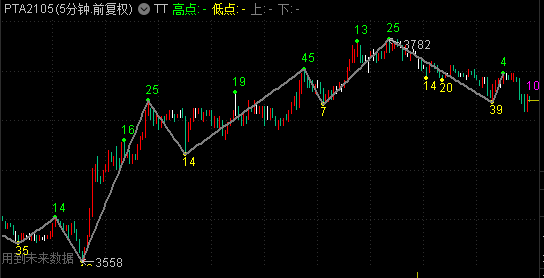 以下含有未来函数的画线代码在金字塔中编译可以通过,但是显示结果不对,烦请老师帮忙修改一下。另外请在高低点处 加上数值显示。比如数值20处,显示高点值3728.