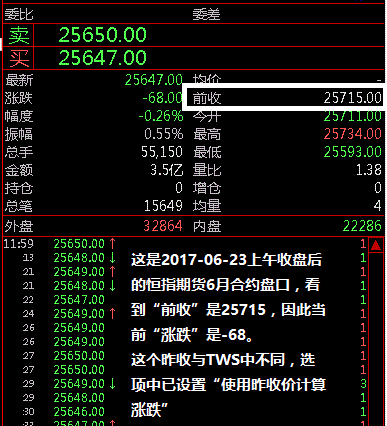 期货使用昨收价计算涨跌,勾上后重启