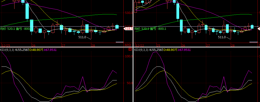 2、采用同一框架4窗格,1,3窗格加载k线,2,4加载关联指标。1、3窗格加相同策略,差别为:1只负责开平多,3只负责开平空。(如图1)