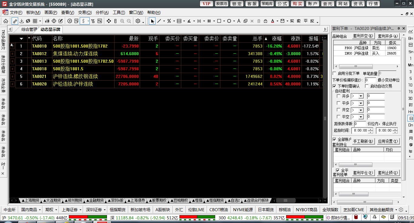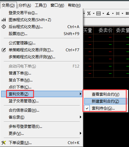 2. 系统有自带的套利交易:菜单栏 交易 》套利交易,需要金字塔专业版才可以使用;可以建立套利合约,查看套利合约,交易套利合约;