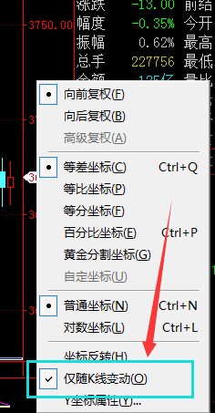 您试下右键Y(价格)轴,选择仅随K线变化; 如果还不行的话,您提供一下完整代码,本地核实一下再给您答复;
