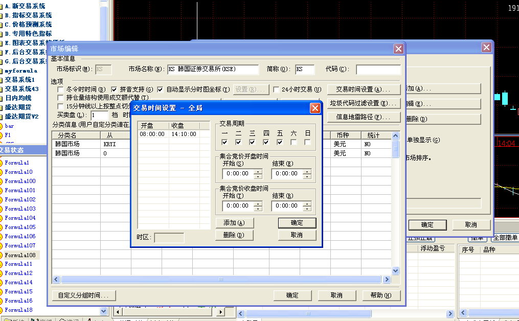 工具---市场与板块----选择韩国证券交易所------点交易时间设置