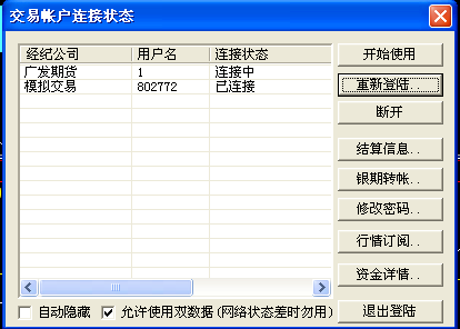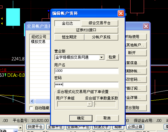 手工登陆了另外一个账号,选择的是金士达模拟交易站点网通
