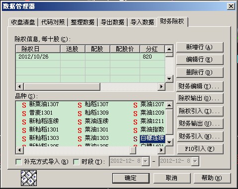 测试品种:白糖连续(自己手工录入了财务除权信息),如图: