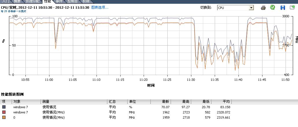 从11:50开始CPU一直在50%以上,这就证明了不是主要显示框架的策略没有运行或者运行不正常,